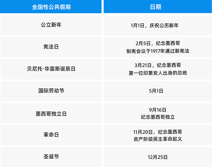 MEXICO HOLIDAYS AND LEAVES